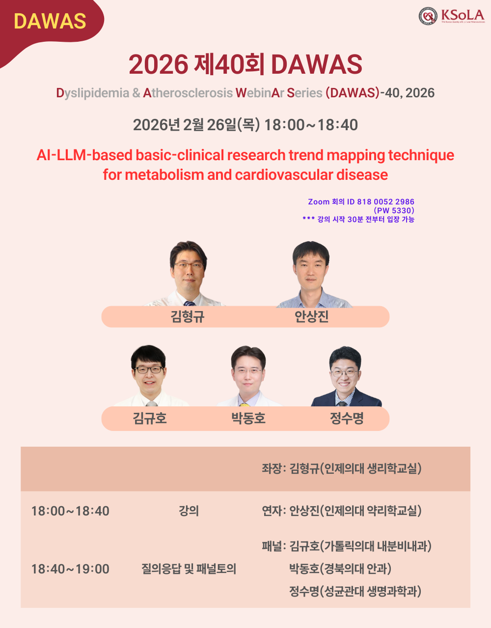 [한국지질·동맥경화학회] 제40회 DAWAS (26.26(목), 18:00~, 웨비나)
