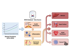 Overview of obesity trends, mechanistic pathways, and health outcomes based on data from the Korean National Health Information Database (NHID). NHIS, National Health Insurance Service; MASLD, metabolic dysfunction-associated steatotic liver disease.